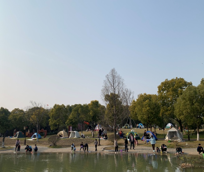 梅花怒放、玉蘭含苞、楊柳吐綠、迎春綻放,無限春光引來游人如織,在公園里處處洋溢著歡聲笑語,春日美景讓游客流連忘返。兒童戲水區(qū)挖沙、戲水、露營、野餐等親子游戲,處處呈現(xiàn)一派歡樂和睦的景象。